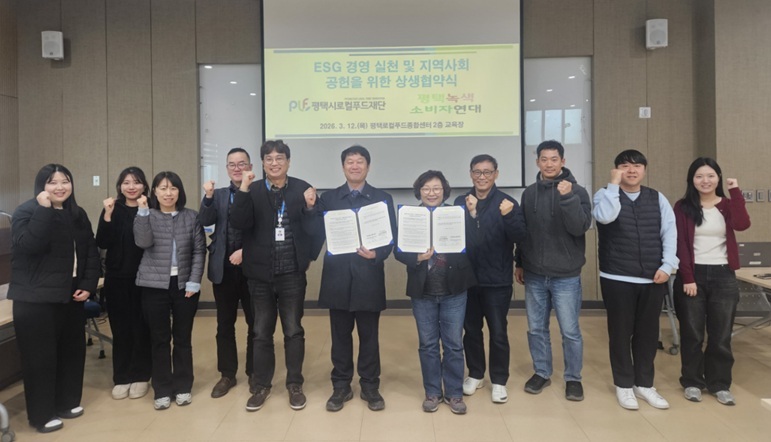 ❑ (재)평택시로컬푸드재단(이하 재단)은 안전하고 지속가능한 먹거리 기반의 녹색소비문화 확산을 위해 지난 12일 평택로컬푸드종합센터 2층 교육장에서 평택녹색소비자연대와 상생업무협약을 체결했다고 밝혔다.