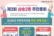 [ 타임즈 - 김시창 기자 ] 고양특례시 덕양구 삼송2동 주민자치회는 오는 11월 26일 개최될 ‘제3회 주민총회’를 앞두고, 2026년도 주민자치사업 선정을 위한 사전투표를 진행한다고 밝혔다. 이번 주민총회는 ‘주민이 직접 결정하는 마을자치 실현’을 목표로, 주민 참여를 극대화하고 활기찬 지역 공동체를 조성하는 데 중점을 둔다. 주요 안건으로 ▲마을축제 ▲이웃과 함께하는 텃밭이야기 ▲마을신문 발행 ▲여름아 반갑다! 신나는 물총놀이 ▲다함께 건강 웃음 한마당 등이 제안됐으며, 주민들의 투표 결과에 따라 2026년도 사업 추진 여부가 최종 결정될 예정이다. 투표는 주민 누구나 손쉽게 참여할 수 있도록 다양한 방식으로 진행된다. 11월 3일부터 14일까지는 QR코드를 활용한 온라인 투표가 진행되며, 11월 7일 원흥역 1번 출구와 19단지 사거리에서 현장 길거리 투표가 열린다. 이를 통해 주민 접근성과 참여율을 한층 높일 계획이다. 김성민 주민자치회장은 “주민 한 분 한 분의 참여가 마을의 미래를 만든다.”며 “이번 총회를 통해 삼송2동이 함께 성장하고 웃을 수 있는 마을로 나아가길 기대하며, 주민들의