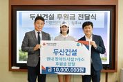 [ 타임즈 - 김시창 기자 ] 두산건설은 지난 28일 원주시 장애인복지시설 지원을 위한 기부금 1,000만 원을 전달하며 지역사회를 위한 나눔을 실천했다. 전달식은 원주시청에서 진행됐으며, 김문기 부시장과 두산건설 오세욱 상무, 두산건설We’ve 골프단 프로골퍼 박결 선수 등이 참석했다. 이번 기부금은 사회복지공동모금회 강원도지회를 통해 원주시 장애인복지시설 7곳에 전달될 예정이다. 두산건설은 장애인의 자립과 사회활동 참여 확대를 위해 지속적으로 사회공헌 활동을 진행하고 있다. 대표적으로 2023년과 2024년, ‘두산건설We’ve 챔피언십’ 갤러리 티켓 판매 대금을 장애인 체육 종목 및 선수 후원에 활용했으며, 지난해에는 골프단 재능 기부를 통해 조성된 기부금을 청각 장애 아동에 전달했다. 최근에는 프로골퍼 신지애 선수와 매칭그랜트 방식의 공동 기부를 진행하며 사회 공헌의 폭을 더욱 넓혔다. 선수 개인의 선한 영향력과 기업의 사회적 책임을 결합한 이번 기부를 비롯해, 두산건설은 스포츠 연계 사회 공헌과 지역사회 협력 활동을 통해 사회적 약자를 위한 실질적인 지원을 이어가고 있다. 두산