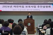 [ 타임즈 - 김시창 기자 ] 충주시는 13일 충주시청 중회의실에서 관내 어린이집 원장을 대상으로 ‘2026년 보육사업 추진 설명회’를 개최했다고 밝혔다. 설명회에서는 올해 보육사업 주요 변경 사항과 어린이집 지도·점검 사례를 공유하고 신규 사업을 안내하며 어린이집의 참여와 협조를 요청했다. 또한 어린이집 운영 과정에서 겪는 애로사항과 현장의 다양한 의견을 청취하는 시간을 갖고, 적극적인 소통을 이어갔다. 이와 함께 충주시육아종합지원센터에서 진행하는 다양한 보육 지원 프로그램도 소개됐다. 센터는 보육교직원을 위한 전문 교육과 상담, 현장 지원 프로그램, 각종 행사뿐만 아니라 부모를 위한 올바른 양육 교육과 가족 참여 프로그램 등도 제공해, 보육 전반에 걸친 지원과 현장 맞춤형 서비스를 강화하고 있다. 시 관계자는 “보육 현장에서 아이들을 위해 애쓰고 계신 어린이집 교직원 여러분께 감사드린다”며 “아이들이 안전하고 행복하게 성장할 수 있는 보육환경 조성을 위해 시에서도 지속적으로 노력하겠다”고 말했다.