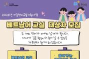[ 타임즈 - 김시창 기자 ] 포천시 직영 ‘더 큰 행복 포천시가족센터’는 다문화 자녀의 이중언어 역량 강화를 위한 2026년 이중언어 교육지원사업 베트남 교실 수강생을 모집한다. 베트남어 교실은 다문화 자녀가 부모님의 모국어인 베트남어를 자연스럽게 습득하게 하여, 이중언어 강점을 가진 글로벌 인재로 성장하도록 돕기 위해 마련했다. ‘두 개의 언어, 두 배의 행복’이라는 슬로건 아래 진행되는 이번 교육은 학습자들의 접근성을 높이기 위해 센터와 일동도서관 두 곳에서 나누어 진행된다. 센터 내 교육실에서 진행되는 ‘베트남어 교실’은 3월 27일부터 12월 12일까지 매주 금요일 저녁 17시 30분부터 19시까지 운영되며, 현재 수강생을 모집 중이다. 일동도서관(1층 세미나실)에서 운영하는 ‘찾아가는 베트남어 교실’은 3월 18일부터 12월 12일까지 매주 수요일 저녁 17시 30분부터 19시까지 진행한다. 교육은 ▲발음 및 성조 훈련 ▲일상생활 중심의 회화 ▲듣기·말하기·읽기·쓰기 통합 학습 ▲다양한 콘텐츠 활용 교육 및 문화 탐험 등 아이들이 흥미를 잃지 않고 즐겁게 언어를 학습할 수 있