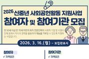 [ 타임즈 - 김시창 기자 ] 천안시가 퇴직 전문인력의 풍부한 경험을 지역사회 공헌 활동으로 연결하는 ‘2026 신중년 사회공헌활동 지원사업’을 추진한다. 천안시는 신중년 세대의 전문성을 비영리기관의 공익사업과 연계해 교육, 행정지원 등 사회서비스를 제공하는 지원사업을 본격 시행한다고 13일 밝혔다. 이번 사업은 퇴직 후에도 일하기를 희망하는 신중년에게 사회참여 기회를 제공하고, 인력난을 겪는 비영리기관에 전문 지식을 보급하기 위해 마련됐다. 참여 대상은 천안시에 거주하는 만 50세 이상 70세 미만의 미취업자로, 관련 분야에서 3년 이상의 경력을 보유했거나 공인 자격을 갖춰야 한다. 모집 인원은 총 40명이며, 선발된 인원은 경영전략, IT 정보화, 법률법무, 문화예술, 행정지원 등 13개 전문 분야에서 활동하게 된다. 참여자에게는 활동 시간에 따라 1일 4시간 이상 활동 시 최대 1만 1,500원의 실비(식비·교통비)가 지급되며, 이와 별도로 시간당 3,500원의 참여 수당이 지원된다. 활동 시간은 1인당 월 120시간, 연 480시간 이내로 제한된다.