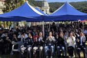 [ 타임즈 - 김시창 기자 ] 포천문화관광재단은 지난 17일 영중면 영평리에 위치한 포천38문화예술창작소(옛 영평초등학교)에서 ‘내 삶을 예술로 채워가는 열린 창작공간, 포천38문화예술창작소 개관식’을 성황리에 개최했다. 개관식은 100여 년의 역사를 가진 영평초등학교가 2022년 폐교된 이후, 시민과 예술가를 위한 복합 문화창작공간으로 새롭게 태어난 의미 있는 순간을 기념하는 자리였다. 백영현 포천시장, 임종훈 포천시의회 의장, 박명석 영평초 장학회장, 이중효 포천문화관광재단 대표이사를 비롯해 내외빈과 시민 등 300여 명이 참석해 개관을 축하했다. 행사는 (사)한국풀피리협회의 식전 공연으로 막을 올렸으며, 경과보고와 기념사, 축사, 인사말 순으로 이어졌다. 이날 행사에서는 영평초 역사관 자료를 기증한 7명에게 감사패를 수여했다. 이어 포천시립소년소녀합창단이 영평초 교가를 제창했다. 기념식 후에는 창작소 조형물 제막식과 함께 115년의 역사를 상징하는 ‘115마리 친환경 비둘기 날리기 퍼포먼스’를 진행했다. 백영현 포천시장과 졸업생 대표, 시민들이 함께 제막 버튼을 누르며 예술창작소의 새로운 출발을 축하했다.