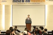 [ 타임즈 - 김시창 기자 ] 화성특례시가 2일 푸르미르호텔 그랜드볼룸에서 ‘2025년 화성시 통·리장 역량 강화 교육’을 개최했다. 이번 교육은 신규 통·리장을 비롯해 읍·면·동 통리장단 협의회 회장 및 총무 등 170여 명을 대상으로 소통 리더십과 통·리장의 직무 및 역할 등을 주제로 진행됐다. 샤인앤컴퍼니 김은혜 전문 강사가 지역 리더로서의 소통기술 교육을 진행했으며, 전은주 강사가 신규 통·리장을 위한 직무와 역할 및 화성시의 통리장 지원 사업인 ‘스마트마을방송’ 활용 교육을 진행했다. 정명근 화성특례시장은 “내년 구청 체제 출범을 앞두고 지역 행정의 핵심 역할을 담당하는 통·리장님의 역할이 그 어느 때보다 중요하다”며 “이번 교육이 통·리장님의 활동에 실질적인 도움이 돼 특례시와 구청 체제에 걸맞은 지역 발전을 함께 이끌어가는 데 지혜와 힘을 모아 주시길 바란다”고 말했다. 한편, 화성시에는 현재 29개 읍·면·동 전역에서 964명의 통·리장이 활동하고 있으며, 이들은 복지 사각지대 발굴, 시책 전달 및 홍보, 주민등록 사실조사, 민방위대 운영, 주민 공동체 형성 등 다양한 임무를 수행하고 있다.