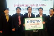 [ 타임즈 - 김시창 기자 ] NH농협은행 하남시지부는 하남시 지역인재 양성을 위해 하남교육재단에 장학금 3백만원을 기탁했다. NH농협은행 하남시지부는 하남시 인재 육성을 위해 12년동안 꾸준히 장학금을 지원하고 있으며, 이번 기탁금은 하남시 학생들의 학업지원에 활용할 예정이다. 이석표 지부장은“지역 학생들의 성장과 미래를 응원하는 마음으로 장학금을 전달했다”며 “앞으로도 지역인재 양성을 위한 다양한 지원을 이어가겠다”고 말했다. 이현재 시장(하남교육재단 이사장)은 “NH농협은행 하남시지부의 꾸준한 관심과 후원에 감사드린다”며 “기탁금이 학생들의 꿈을 키우는 데 도움이 되도록 소중히 사용하겠다”고 밝혔다. 하남교육재단은 관내 초·중·고등학생들을 대상으로 장학사업을 비롯해 캠퍼스 투어, 기업체험, 진로·진학 프로그램, 학부모 교육 등 다양한 교육 지원 사업을 운영하고 있으며, 매년 약 3만여명의 학생들이 교육서비스를 제공받고 있다.