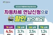 [ 타임즈 - 김시창 기자 ] 천안시는 다음 달 2일까지 자동차세 연납 신청을 받는다고 7일 밝혔다. 자동차세 연납제도는 매년 6월과 12월에 나누어 부과되는 자동차세를 1월에 한 번에 납부하면 연세액의 4.5%를 공제해주는 제도다. 연납 신청은 1월 외에도 3월, 6월, 9월에도 가능하며, 이 경우 공제율은 각각 연세액의 3.7%, 2.5%, 1.2%가 적용된다. 연납 후 차량 소유권 이전이나 폐차·말소 등 변동 시 남은 기간에 해당하는 자동차세를 환급받을 수 있다. 자동차세 연납 신청은 구청 세무과 및 읍면동 행정복지센터를 방문하거나 전화로 신청할 수 있으며, 위택스를 통한 전자 신청도 가능하다. 다만 지방세 자동이체를 신청했더라도 자동차세 연납은 자동 납부되지 않으므로 반드시 직접 납부해야 한다. 김미영 세정과장은 “자동차세 연납 제도는 세액공제 혜택과 함께 납세 편의를 높일 수 있는 제도”라며 “시민들께서는 연납 신청 기간을 놓치지 말고 기한 내 납부를 통해 절세 혜택을 받으시길 바란다”고 말했다.