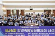 [ 타임즈 - 김시창 기자 ] 용인특례시는 10일 시청 컨벤션홀에서 민족통일 용인특례시협의회 주관으로 ‘민족통일 용인특례시대회와 제56회 한민족통일문화제전 시상식’이 열렸다고 밝혔다. 이날 행사는 한반도의 평화와 통일을 주제로 한 글짓기·웹툰·포스터·사진 공모전의 입상작을 시상하고, 유공회원에게 표창을 수여하고자 마련됐다. 민족통일 용인특례시협의회는 1981년 창립한 단체로 매년 태극기 나눔을 비롯해 지역사회 통일운동 의식 제고 등을 위한 다양한 활동을 벌이고 있다. 이날 협의회는 홍보자료 시청, 통일 관련 동영상과 남북 언어 차이에 대한 학습자료를 시청하고 간단한 통일 퀴즈대회를 거쳐 우수 작품 3개를 낭독했다. 이어진 시상식에서는 용인특례시장상 3명 등 총 36명이 수상의 영예를 안았다. 유한종 민족통일 용인특례시협의회장은 “민족의 염원인 한반도 평화통일을 위해 어려운 여건 속에서도 적극 지원해 주시는 이상일 시장님께 감사드린다”며 “대한민국 통일의 그 날이 올 때까지 협의회 회원의 뜻을 한데 모아 더욱 적극 활동하겠다”고 했다. 이상일 시장은 “대한민국이 한국전쟁의 비