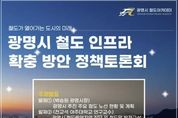 [ 타임즈 - 김시창 기자 ] 광명시는 미래 철도도시로 도약하기 위한 핵심 전략을 논의한다. 시는 오는 15일 오후 3시 시청 대회의실에서 ‘광명시 철도 인프라 확충방안 정책 토론회’를 개최한다. 이번 토론회는 신천–하안–신림선 추진 현황을 비롯해 광명시의 철도 접근성 진단, 철도 음영지역 개선 방향, KTX광명역의 미래 역할 등 광명시 철도 정책의 주요 과제를 종합적으로 점검하기 위해 마련했다. 토론회에서는 세 건의 주제 발제가 이어진다. 먼저 박승원 광명시장이 신천–하안–신림선 등 주요 사업의 추진 현황과 향후 계획을 설명하고, 이어 전교석 아주대 연구교수가 광명시 철도 음영지역 진단과 철도망 발전 구상을 제시한다. 마지막으로 나희승 전 코레일 사장은 유라시아 평화철도 구상 속에서 KTX광명역이 나아가야 할 미래적 역할을 발제한다. 발제 후에는 유정훈 대한교통학회장(아주대 교수)을 좌장으로, 각 분야 전문가가 참여하는 패널 토론과 질의응답이 이어진다. 시민들은 별도의 신청 없이 현장을 방문해 발제와 토론을 청취하고 질의할 수 있다. 시는 이번 토론회에서 제시된 전문가 의견과 시민 의견을 중장기 철도정책에 적극 반영하고, ‘미래 철도도시 광명’을 실현하기