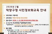[ 타임즈 - 김시창 기자 ] 고양특례시 덕양구는 고양시민의 디지털 역량 강화를 위해 ‘2026년 제1차 덕양구 시민정보화교육’ 수강생을 오는 22일부터 모집한다고 밝혔다. 이번 교육은 급변하는 디지털 환경에 발맞춰 실생활에 바로 적용할 수 있는 실용적인 커리큘럼으로 구성됐다. 기존의 컴퓨터 기초 교육에 더해, 최근 관심이 높아지고 있는 인공지능(AI) 개념을 배우는 과정을 새롭게 편성해 디지털 격차 해소에 앞장선다. 시민정보화교육은 2월 3일부터 26일까지 주 4일(월~목) 과정으로 덕양구청 6층 전산교육장에서 진행된다. 교육은 ‘문서작성기초’와 ‘컴퓨터기초와 AI 맛보기’ 두 개 과정으로 운영된다. ‘문서작성기초’에서는 사무 업무에 필요한 문서 작성 프로그램의 기본 기능을 익히고, 효율적인 데이터 관리 방법을 배울 수 있다. ‘컴퓨터기초와 AI맛보기’에서는 컴퓨터 기본 사용법부터 최신 인공지능(AI) 도구 활용법을 다룬다. 교육 신청은 오는 22일 오전 9시부터 덕양구청 누리집을 통해 온라인으로만 가능하며 덕양구청 누리집 ‘생활정보-교육-정보화교육’ 또는 상단 메뉴 ‘통합예약-교육․강좌-정보화교