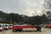 [ 타임즈 - 김시창 기자 ] 당진시는 산불 위험이 높아지는 건조기를 대비해 지난 25일 아미행복교육원 운동장에서 당진소방서와 합동으로‘2025년 산불진화 통합훈련’을 실시했다고 26일 밝혔다. 이번 통합훈련은 아미산에서 산불이 발생한 상황을 가정해 진행했으며, 산불 대응 과정 전반을 실제 상황처럼 구현해 초동 대응 능력 강화와 기관 간 협업 체계 점검을 목표로 했다. 특히, 초기 발화 지점 확인부터 본격적인 진압 단계까지 전 과정을 순차적으로 모의해 산불 대응의 실전성을 높였다. 훈련에는 당진시 18명, 산불 전문 예방진화대 40명, 당진소방서 12명 등 총 70명이 참여했으며, 산불 지휘차 1대, 산불 진화차 8대, 산림재난 드론 1대, 소방차 4대 등 총 14대의 장비를 동원했다. 훈련은 △대책본부 훈련 △진화훈련 △세부 일정 훈련 등 3단계로 진행했다. 대책본부 훈련에서는 산불현장통합지휘본부를 설치해 현장 상황실을 가동하고 상황판 구축, 통신 점검, 드론 영상 송출 등 지휘·통제 기능을 집중 점검했다. 진화훈련에서는 산불전문예방진화대가 진화차 호스릴 전개, 펌프 가동