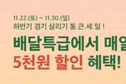 [ 타임즈 - 김시창 기자 ] 경기도 공공배달앱 배달특급이 2025년 하반기 경기살리기 ‘통 큰 세일’에 합류한다. 경기도주식회사는 오는 30일 일요일까지 배달특급 전체 회원을 대상으로 배달특급 입점 가맹점에서 사용할 수 있는 5천원 할인 쿠폰을 제공한다고 23일 밝혔다. 해당 프로모션은 배달특급 애플리케이션 내 상반 ‘통 큰 세일’ 배너를 통해 쿠폰을 내려받아 결제 단계에서 사용할 수 있다. 예산 소진 시까지 회원당 매일 1회 내려받아 사용 가능하다. 배달특급은 지난 상반기에도 경기도와 경기도시장상권진흥원이 추진한 ‘2025년 상반기 경기 살리기 통 큰 세일’에 참여한 바 있다. 당시 배달특급은 경기도 지역화폐가 연동되는 공공배달앱 3사(배달특급, 땡겨요, 먹깨비) 가운데 가장 먼저 할인 쿠폰을 소진시켰고, 가장 많은 30억 원의 거래액을 기록하며 소비자와 소상공인의 상생을 이끌어 낸 바 있다. 한편, 배달특급의 모든 이벤트는 해당 상단 배너 기능을 통해 확인 가능하며, 지역에 따라 할인 조건과 금액이 달라질 수 있어 사전 확인이 필요하다.