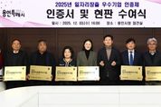 [ 타임즈 - 김시창 기자 ] 용인특례시는 3일 본관 4층 전겹실에서 일자리 창출에 힘쓴 지역 우수기업 8곳에 인증서와 현판을 수여했다. 이번에 선정된 기업은 ▲아산디앤씨 주식회사 ▲일승푸드 제2공장 ▲주식회사 에이치에스씨 ▲㈜인실리코젠 ▲주식회사 홈체크 ▲㈜휴먼인텍 ▲케이제이건설산업(주) ▲트루션 등 총 8개사다. 시는 1차 서류심사와 2차 현장실사를 거쳐 일자리 창출 실적, 고용 안정성, 기업의 성장 가능성, 근로환경 등을 종합적으로 평가해 우수기업을 선정했다. 이들 기업은 최근 1년간 총 74명(기업당 4~19명)을 신규 채용해 지역 내 일자리 창출에 기여했다. 또, 다양한 직원복지제도로 근무하기 좋은 환경을 조성해 일자리의 질을 높이는 데 크게 힘쓴 것으로 평가됐다. 이들 기업에는 인증서와 현판이 수여되며, 시가 주최하는 일자리사업, 기업지원사업 참여 시 가점이 주어진다. 일자리박람회 등 채용 행사에도 우선적으로 참여할 수 있다. 용인특례시 일자리창출 우수기업 인증제는 2018년부터 시행되고 있으며, 매년 고용 확대와 일자리 창출에 기여한 기업을 발굴·지원하고 있다. 우수기업 선정은 신규 고용 창출 규모를 비롯해 경영 건전성, 청년·지역인재·취업취약계