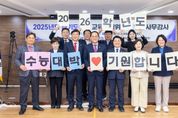 [ 타임즈 - 김시창 기자 ] 경기도의회 교육기획위원회(위원장 안광률)는 11월 12일, 2026학년도 대학수학능력시험을 하루 앞두고 수험생들을 노고를 격려하고 희망의 메시지를 전하기 위해 응원 시간을 가졌다. 이번 응원은 2025년도 행정사무감사 일정 중 경기도교육복지종합센터에서 진행됐으며, 위원들은 "2026학년도 수능대박을 기원합니다" 문구가 적힌 카드섹션을 들고 따뜻한 격려의 마음을 전했다. 안광률 위원장은 “수능은 단 하루지만, 그날을 위해 흘린 땀방울과 노력의 시간은 누구보다 길고 깊었다”며, 이어 “경기도의회는 그 노력의 결실 위에서 모든 수험생이 환하게 웃을 수 있기를 바라며, 여러분의 내일을 진심으로 응원한다”고 덧붙였다. 또한 안 위원장은 “경기도교육청은 유관기관과 긴밀히 협력해 만일의 상황 속에도 신속히 대응할 수 있는 체계를 갖춰달라”며, “모든 수험생이 공정하고 안정된 환경에서 시험을 치를 수 있도록 만전을 기해달라”고 당부했다. 이날 교육기획위원회 위원들은 한목소리로 “수험생 여러분, 그동안 정말 수고 많았습니다. 끝까지 포기하지 말고, 자신을 믿고 나아가시길 바랍니다”라며