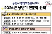 [ 타임즈 - 김시창 기자 ] 용인특례시는 24일부터 26일까지 수지구에 있는 용인시평생학습관에서 제1차 단기 교육 프로그램 수강생을 모집한다고 13일 밝혔다. 이번 제1차 교육프로그램은 ▲건강한 나를 위한 한끼 등 조리 분야 2개 ▲수제비누와 친환경 세정제 만들기 뷰티 분야 1개 ▲의류수선과 리폼 등 기술·실용 분야 2개 ▲스마트폰 활용 백서 등 정보화 분야 4개 ▲생활 속 재테크 등 인문·교양 분야 2개 ▲소소한 일상 드로잉, 우쿨렐레 등 문화예술 분야 5개 등 총 16개 강좌로 구성돼 있으며, 총 236명의 수강생을 모집한다. 교육은 3월 3일부터 4월 27일까지 8주간 진행된다. 수강료는 강좌 기간과 시간에 따라 2만 원에서 3만 원까지 책정된다. 재료비는 별도로 부담해야 한다. 19세 이상의 용인 시민이라면 누구나 신청할 수 있으며, 용인에 주소를 둔 기업의 직장인과 재외국민, 결혼 이민자도 가능하다. 접수는 용인시평생학습관 누리집에서 온라인으로 신청(모바일 가능)하면 된다. 추가 모집 기간에는 개강 강좌의 잔여 인원에 한해 선착순으로 모집한다. 시 관계자는 “다양한 평생교육을