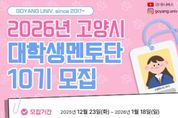 [ 타임즈 - 김시창 기자 ] 고양특례시가 지역 청소년들의 진로 설계를 도울 대학생 멘토단 ‘고양유니브’의 2026년도 신입 단원을 1월 18일까지 모집한다고 밝혔다. 고양형 청소년 진로체험 사업의 대표적인 사업인 ‘고양유니브’는 지역 출신 또는 거주 대학생들이 관내 중고등학생들에게 전공 학과 탐색과 진로 멘토링을 제공하는 프로그램이다. 특히 2026년은 2017년 출범 이후 10년을 맞이하는 해로, 그간의 운영 노하우를 집약해 더욱 내실 있는 프로그램이 운영될 전망이다. 지원 자격은 △고양시 내 중고등학교를 졸업한 대학생 △고양시에 거주 중인 대학생 △고양시 소재 대학교에 재학(또는 휴학) 중인 대학생이라면 누구나 가능하다. 다만, 대학원생은 제외된다. 선발 과정은 지원서의 충실성과 학과 구성의 다양성 등을 종합적으로 심사하여 진행된다. 최종 합격자는 2026년 1월 24일 고양시청소년재단 누리집을 통해 발표될 예정이다. 선발된 멘토들은 청소년들에게 생생한 학과 정보와 진로 상담을 제공하며, 이와 동시에 멘토들 간의 네트워킹 활동과 역량 강화 교육을 통해 개인의 성장 기회도 얻게 된다.