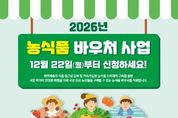 [ 타임즈 - 김시창 기자 ] 화성특례시는 저소득 취약계층의 영양 개선과 지역 농산물 소비 활성화를 위해 22일부터 ‘2026년 농식품 바우처 지원사업’ 신청을 받는다. 지원 대상은 생계급여(기준 중위소득 32% 이하) 수급자 중 임산부, 영유아, 아동, 청년을 포함한 가구로 1인 가구 월 4만 원, 4인 가구 월 10만 원 등 가구원 수에 따라 차등 지원된다. 지원 기간은 1월부터 12월까지 12개월이다. 지원 품목은 국산 채소, 과일, 육류, 잡곡, 두부류 등 신선 농산물을 구매할 수 있는 전자카드 형태로 제공되며, 농협 하나로마트, 편의점 등에서 사용할 수 있다. 지원 신청은 22일부터 주소지 관할 출장소 및 읍·면 행정복지센터를 방문하거나 온라인, ARS(☎1551-0857) 등을 통해 다양한 경로로 신청할 수 있으며, 2025년 사업 이용 가구로 지원 자격요건을 충족하는 경우 별도의 신청 절차 없이 자동 신청 처리될 예정이다. 기타 자세한 사항은 화성시청 농식품유통과 및 주소지 관할 출장소·읍·면 행정복지센터로 문의하면 된다. 신태식 농식품유통과장은 “이번 농식품 바우처 지원사업을 통해 저소득 취약계층의 건강한 식생활을 돕고 지역 농산물 소비를 촉