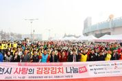[ 타임즈 - 김시창 기자 ] 이천시자원봉사센터는 11월 14일 이천종합운동장 서문 입구 자원봉사자탑 앞에서 자원봉사자 240여 명이 참여한 가운데 ‘2024 사랑의 김장김치 나눔’ 행사를 성공적으로 개최했다. 이번 행사는 탑머티리얼, 지엘산업개발, SK하이스텍, 세람저축은행, 이천중앙로타리클럽 등 5개 기업·단체의 지정기탁금 4,500만 원과 경기사회복지공동모금회의 후원으로 추진됐다. (재)이천시자원봉사센터가 주최·주관하여 지역사회에 온정을 전하는 의미 있는 나눔을 실천했다. 특히 올해 김장에는 기탁 기업 임직원과 장애인, 다문화가정, 북한이탈주민, 외국인 근로자 등 다양한 지역 구성원이 함께 참여해, 김장을 담그며 서로의 따뜻한 마음을 나누는 다문화·포용형 행사로 진행됐다. 이날 담근 김장김치 5,000포기는 이천시 14개 읍면동 행정복지센터와 사회복지기관을 통해 저소득층, 홀몸 어르신 등 지역 내 취약계층 1,100가구에 전달됐다. 김경희 시장은 “추운 날씨에도 참여해 주신 기업, 단체, 자원봉사자 여러분께 깊이 감사드린다”라며 “올해는 규모가 더욱 확대됐지만 모두의 따뜻한 마음 덕분에 행사를