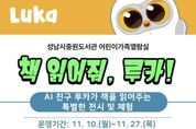 [ 타임즈 - 김시창 기자 ] 성남도시개발공사 중원도서관은 지역 어린이들에게 인공지능(AI) 기술을 활용한 새로운 독서 체험 기회를 제공하기 위해 ‘책 친구 로봇, 루카(LUKA)’를 오는 12월까지 운영한다고 21일 밝혔다. ‘루카’는 책 표지를 인식해 음성으로 내용을 읽어주는 인공지능 독서로봇으로, 유아와 어린이가 스스로 책을 읽고 들으며 독서의 즐거움을 느낄 수 있도록 돕는 AI 독서학습 보조기기다. 이번 사업은 루카를 활용한 전시와 기관 협력 프로그램을 통해 어린이들에게 친숙하고 흥미로운 독서 경험을 제공하고자 마련됐다. 먼저 중원도서관에서는 한 달간 ‘책 읽어줘! 루카’ 전시가 진행된다. 어린이·가족열람실에 루카와 전집을 함께 비치해, 어린이들이 직접 로봇을 체험하며 자연스럽게 책 읽는 즐거움과 호기심을 느낄 수 있도록 운영된다. 시민 누구나 자유롭게 참여 가능하며, AI 기술과 독서가 결합된 혁신적인 독서문화를 체험할 수 있는 특별한 기회를 제공한다. 또한, 도서관 밖에서도 아이들이 책과 만날 수 있도록 ‘책 나들이 ON 루카’ 협력 프로그램을 진행한다. 성남시 내 보육기관 및 교육기관 3곳에 루카와 전집 도서를 한 달간 지원해, 더 많은 어린이들