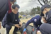 [ 타임즈 - 김시창 기자 ] 하은호 군포시장이 길에 쓰러진 할머니를 발견하고 신속한 신고와 응급처치를 통해 무사귀환을 도와 화제다 하은호 시장은 27일 오전 10시경 관내 출장길에 산본중앙공원 사거리 KT옆 공원에 쓰러진 할머니를 발견했다. 하 시장 일행은 즉시 차에서 내려 119 신고를 하고 할머니를 편안한 자세로 높혀 상태를 살피며 의식을 잃지 않도록 간호했다. 즉시 출동한 119구조대는 할머니의 의식을 잃지 않도록 주의하며 응급조치를 했고 상태가 호전되어 구급차를 타고 귀가한 것으로 알려졌다. 하은호 시장은 유난히 재난 구조 현장과 가깝다. 고교생이었을 때 안양 일대에 대홍수가 났을 때 대림대학교 앞에서 버스 안으로 물이 차오르는 현장에서 사람들을 구조한 적이 있다. 지난 2022년에는 산본역 피트인 사거리에서 횡단보도 옆에 쓰러진 노인을 발견하고 이번처럼 신속하게 신고와 구조를 통해 무사귀환을 도왔다. 하은호 군포시장은 “해빙기 사고 예방을 위해 직원들과 회의를 마치고 나서는 길이었다”며 “봄이 오는 길목에서 어르신들의 각별한 주의가 필요하다”고 말했다.
