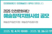 [ 타임즈 - 김시창 기자 ] 인천문화재단은 오는 12월 2026 예술창작지원사업 공모를 시작한다. 공모 분야는 예술창작일반지원, 예술창작집중지원으로 두 가지이다. 접수기간은 2025년 12월 4일부터 12월 26일까지이며, 국가문화예술지원시스템으로 온라인 신청을 받는다. 2026 예술창작지원사업 공모 계획은 분야별, 지역별 예술인 간담회에서 수렴한 현장 의견을 반영하여 마련됐다. 이번 공모의 주요 변경사항 중 하나는 지원자 책임 신청제 확대 시행이다. 2025년부터 추진하고 있는 행정 간소화 기조에 따라 2026년 공모사업은 신청 자격 증빙자료를 최종 선정 이후 제출하는 것으로 변경했다. 이에 예술인의 공모 신청 서류 준비에 대한 부담이 경감될 것으로 예상된다. 2026 예술창작지원사업 공모에 대한 자세한 사항은 인천문화재단 홈페이지 공지사항과 11월 26일 예정된 사업설명회(온라인: 오전 10시 30분, 오프라인: 15시)에서 확인할 수 있다.