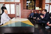 [ 타임즈 - 김시창 기자 ] 박완수 경남도지사는 2024년 갑진년 새해를 맞아 4일 오후 양산 통도사를 방문하여 조계종 종정 성파스님, 통도사 주지 현덕스님과 새해 덕담을 나누었다. 이날 자리에는 나동연 양산시장과 최영호, 권혁준, 박인, 허용복 도의원도 함께하여 도정의 방향과 지역 발전에 대하여 고견을 나누었다. 양산시 영축산에 자리하고 있는 통도사는 대한불교조계종 제15교구본사로, 합천 해인사. 순천 송광사와 더불어 우리나라 삼보사찰 중 하나이다. 이번 방문은 지역사회 발전을 위한 협력의 중요성을 강조하는 자리로, 도정의 중요 사안들에 대한 의견을 나누었다. 특히, 경상남도와 양산시가 협력하여 지역사회 발전을 위한 다양한 협력 방안에 대해 중점적으로 논의했다. 박완수 도지사는 “지난해 경남이 재도약의 기반을 닦는 한 해였다면 올 한 해는 본격적으로 도약하는 시기가 될 것”이라며 “도내 전 지역과 함께 힘을 모아 희망의 새 경남시대를 위해 나아가겠다”라고 밝혔다.