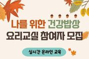 [ 타임즈 - 김시창 기자 ] 서원주건강생활지원센터는 지역 주민의 올바른 식습관 형성과 대사증후군 예방·관리를 돕기 위해 ‘나를 위한 건강밥상 요리교실’ 프로그램 참여자를 모집한다. 이번 요리교실 프로그램은 10월 15일부터 11월 5일까지 매주 수요일마다 총 4회에 걸쳐 운영된다. 활동은 실시간 온라인 수업으로 오전 10시 30분부터 11시 30분까지 1시간 동안 진행되며, 참가비는 무료다. 모집 인원은 온라인 수업이 가능한 지역 주민 30명이며, 참여 신청은 9월 29일부터 10월 1일 전화로 선착순 접수한다. 단, 상반기 같은 과정 참여자는 신청이 제한된다.