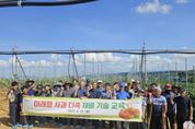 [ 타임즈 - 김시창 기자 ] 당진시농업기술센터는 지난 25일 관내 사과 농가 및 희망자를 대상으로 미래형 사과 다축 재배 기술 이론 및 현장 교육을 추진했다고 26일 밝혔다. 이번 교육은 정혜웅 교수(충남농업마이스터대학)를 초빙해 사과 다축 재배의 원리, 재식 거리, 전정 및 시비 관리 등 주제로 이론 교육을 하고, 충남 미래형 다축 사과원 조성 기술지원 사업으로 조성된 사과 다축 과원에서 현장 교육을 진행했다. 사과 다축수형의 가지 유인, 수체 관리 등 평소 농가들이 궁금해 왔던 질의응답 및 농가 애로사항을 듣고 해결 방안을 제시하는 등 생생한 현장 교육이 진행돼 농가들로부터 호응을 얻었다. 사과 다축수형은 최근 주목받고 있는 미래형 수형이다. 세장방추형 등 기존 수형과는 달리 하나의 대목에 원줄기를 2개 이상 유인해 재배하는 방법으로 생산성 향상, 노동력 절감 등 미래형 과원으로 주목받고 있다. 현재 당진시는 사과 다축과원 20 농가(총 10ha)가 조성돼 있으며, 시는 지역 특화작목 육성의 일환으로 2030년까지 30ha 이상 조성할 계획이라고 밝혔다. 더불어 사과 재배 기술의