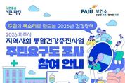 [ 타임즈 - 김시창 기자 ] 파주시는 시민의 건강한 삶을 지원하기 위해 '2026년 지역사회 통합건강증진사업’추진에 앞서 주민건강요구도 조사를 실시한다. 조사는 오는 25일까지 진행되며, 파주시에 거주하는 시민이라면 누구나 참여할 수 있다. 조사 문항은 총 29개로, ▲일반적 특성 ▲건강문제 및 건강검진 ▲건강행태 ▲건강증진사업 요구도 등으로 구성됐다. 이를 통해 주민의 건강 인식과 필요 사항을 폭넓게 파악하고, 시민의 의견을 수렴해 건강정책에 반영할 방침이다. 조사에 참여하려면 홍보 안내문에 있는 정보 무늬(QR코드)를 통해 온라인 접속하거나 파주시 누리집을 접속하면 된다. 또한 보건소·보건지소·보건진료소 등 보건의료기관과 읍면동 행정복지센터에 비치된 설문지를 통해서도 참여할 수 있어, 스마트폰 이용이 어려운 시민도 편리하게 의견을 제시할 수 있다. 응답 내용 중 개인정보는 수집하지 않으며, 조사 결과는 2026년 지역사회 통합건강증진사업의 세부 사업 기획과 우선순위 설정에 적극 활용될 예정이다. 이한상 파주보건소장은 “이번 주민건강요구도 조사는 시민이 직접 건강정책의 방향을 제안하