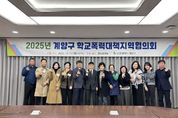 [ 타임즈 - 김시창 기자 ] 인천광역시 계양구는 지난 17일 구청 영상회의실에서 ’계양구 학교폭력대책지역협의회‘를 개최했다고 밝혔다. 계양구 학교폭력대책지역협의회는'인천광역시 계양구 학교폭력예방 및 대책에 관한 조례'에 따라 학교폭력 예방 대책을 수립하고 기관별 상호 지원 방안을 협의하는 위원회로 위원장은 부구청장이며 총 13명의 위원이 참여하고 있다. 이번 회의에는 구 의회, 교육청, 경찰서, 보호관찰소 등 유관 기관 관계자들뿐만 아니라 녹색어머니연합회, 학교 운영위원회 소속 학부모까지 심의 위원으로 참석해 학교 폭력 예방과 해결을 위한 지역사회와 학부모의 상호 협력 속 다양한 의견을 교환했다. 위원장인 이동우 부구청장은 “이번 회의에서 논의된 다양한 의견들을 반영해 실효성 있는 학교폭력 예방 대책을 추진할 계획이며, 앞으로 청소년들이 더 안전한 환경에서 걱정 없이 성장할 수 있도록 노력하겠다.”라고 말했다. 한편, 구는 앞으로도 관계 기관과 협력을 강화하고 실질적 대응 체계를 구축해 학교폭력 이전부터 사후 회복까지 지역사회 중심의 통합 지원을 제공할 계획이다.