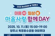 [ 타임즈 - 김시창 기자 ] 양주시보건소와 양주시정신건강복지센터는 정신건강의 날(10월 10일)을 맞아 시민들의 정신건강 인식 증진과 마음건강 회복을 위해 '마음(心) 일상쉼, 마음사랑 함께 데이(마음을 쉬게 하는 하루)'를 개최한다. 이번 행사는 오는 10월 11일 오후 3시부터 7시까지, 옥정호수공원 야외무대에서 진행되며, 남녀노소 누구나 즐길 수 있는 다채로운 공연과 체험 프로그램이 마련되어 있다. ▲ 공연 프로그램으로는 15:00~15:40 어린이를 위한 마술쇼 & 버블쇼, 16:00~17:00 시민들에게 휴식과 위로를 전하는 힐링콘서트(가능동 밴드, 미지니 공연),17:20~19:00 가족과 함께 즐기는 영화(인사이드 아웃 2)를 상영한다. ▲ 체험 프로그램으로는 일상에 지친 마음을 다독이기 위해 다양한 정신건강 체험 부스가 운영되며, 시민들은 △아로마 체험 △환청체험 △우울증 검진 △스트레스 검사 △도박중독예방 두더지게임 △키다리 아저씨 풍선 이벤트 △포토 부스 등 다채로운 프로그램에 참여하여 정신건강의 중요성을 쉽고 즐겁게 체감할 수 있다. 양주시보건소 관계자는 “이번 행사를 통해 시