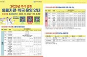 [ 타임즈 - 김시창 기자 ] 양주시가 추석을 앞두고 오는 10월 3일부터 9일까지 7일간 ‘추석 연휴 응급진료체계’를 운영한다. 시는 연휴 기간 동안 의료 공백을 줄이기 위해 24시간 진료가 가능한 당직의료기관인 양주예쓰병원을 비롯해, 일자별로 지정된 병의원과 약국을 운영한다. 특히, ▲국군양주병원은 24시간 응급실을 ▲나무정원여성병원은 산과 응급실 ▲에스엘서울병원은 정형외과 응급 외상 진료를 운영한다. 추석 당일에도 더플러스24의원과 두리이비인후과의원이 정상 진료 한다. 투석 환자를 위해 더맑은내과의원과 양주예쓰병원을 운영하며, 선암건강약국과 참사랑약국은 공공심야약국을 운영해 야간 시간대에도 의약품 구입이 가능하다. 단, 기관별 운영 일정과 진료 시간은 변동될 수 있으므로 방문 전 반드시 해당 기관에 전화로 확인해야 한다. 양주시보건소는 연휴 기간 동안 상황근무반을 운영해 관내 의료기관과 약국 진료 일정 안내 및 응급진료 체계 점검을 통해 시민 불편을 최소화할 계획이다. 또한 ▲응급의료포털 E-Gen 홈페이지 ▲응급의료 정보제공 앱 ▲QR코드를 통해서도 가까운 의료기관과