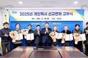 [ 타임즈 - 김시창 기자 ] 파주시는 지난 29일 '2025년도 개인택시 신규면허 교부식’을 개최했다고 밝혔다. 이날 교부식에는 파주시 개인택시조합장, 개인택시조합 임원 등이 참석해 신규면허자 5명에게 면허를 수여했다. 시는 지난 9월, 증차분 2대와 기존 면허 감차분 3대를 포함한 총 5대에 대해 개인택시 신규면허자 신청 공고를 실시했다. 공고를 통해 접수된 14명을 대상으로 운전 자격, 무사고 기간, 운전 경력 현지 확인 등 엄격한 심사를 거쳐 최종 5명을 신규면허자로 선정했다. 그동안 파주시는 택시 승차난을 해소하기 위해 지속적으로 증차 방안을 모색해 왔다. 국토교통부의 ‘제5차 택시총량제 지침(2025~2029)’시행에 따라 감차가 우려되는 상황에서 자율조정협의회를 통해 최대 증차 비율 10%를 확보하고, 경기도 택시감차위원회에서 증차가 심의·의결됨에 따라 감차 지역에서 증차 지역으로 전환돼 2대 증차에 성공했다. 이에 따라 기존 826대였던 파주시 택시 대수는 2대가 늘어나 총 828대의 택시가 파주시 전역에서 운행하게 됐다. 김경일 파주시장은 “개인택시는 시민들의 일상 이동을 책임지는