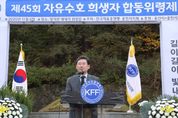 [ 타임즈 - 김시창 기자 ] 이상일 용인특례시장은 6일 처인구 양지면 대대리 ‘자유수호희생자위령탑’에서 열린 제45회 자유수호희생자 합동위령제에 참석해 희생자들을 추모했다. 이날 행사엔 이상일 시장을 비롯한 박창무 한국자유총연맹 용인시지회장 등 지역 내 단체 관계자와 시민 50여 명이 참석했다. 행사는 희생자를 기리기 위한 추도 의식, 추념사·추도사, 조가 연주와 제창, 진혼무, 헌화 순으로 진행됐다. 이상일 시장은 추도사에서 “고대부터 자유는 인간에게 가장 중요한 가치로 자유를 얻지 못하면 우리는 평등해질 수가 없다”며 “선배 세대들이 목숨을 바치면서 자유를 지켜낸 모습만 봐도 자유는 그냥 얻어진 것이 아니다”라고 강조했다. 이 시장은 “우리가 매년 위령제를 지내는 것은 1990년 9월 21일 희생당하신 분들의 고귀한 넋을 우리가 면면히 잘 이어받아 선배 세대가 소중하게 지킨 이 나라를 더욱더 발전시켜 후배 세대들에게 물려주기 위함이라고 생각한다”며 “호국영령의 넋이 하늘나라에서도 늘 평안을 누리시길 기원드린다”고 했다. 자유수호희생자위령탑은 1950년 9월 21일 용인·화성·수원 등지에서 끌려와 양지면 대대리에서 북한군에 학살당한 민간인 187명의 영혼