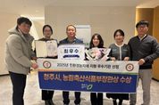 [ 타임즈 - 김시창 기자 ] 이범석 청주시장이 27일 농업 발전과 농업인 실익 증대에 기여한 공로로 농협중앙회장 감사패를 받았다. 농협중앙회장 감사패는 매년 농업 발전과 농업인 실익 증대 및 농업경쟁력 강화에 기여한 지방자치단체장에게 수여된다. 이날 청주시청 임시청사 직지실에서 열린 수여식에는 이범석 청주시장, NH충북농협 이용선 충북본부 총괄본부장, 이장환 청주시지부장 등이 참석했다. 감사패는 강호동 농협중앙회장의 이름으로 전달됐으며, 이용선 총괄본부장과 이장환 청주시지부장이 함께 이 시장에게 전달했다. 이범석 시장은 지역농산물 공급 활성화와 농가소득 증진을 위한 공공급식지원센터 개소 및 로컬푸드 직거래 매장 확대, 스마트팜 원예단지 조성을 통한 청년 농업인 육성 등 농업·농촌의 발전을 위해 다양한 정책을 추진한 공로를 인정받았다. 이용선 충북본부 총괄본부장은 “농업과 농촌을 위해 헌신적으로 노력해주신 청주시장님께 깊이 감사드린다”며 “앞으로도 농협은 청주시와 긴밀히 협력해 농업인의 행복을 높이고 지역사회와 상생 발전하기 위해 최선을 다하겠다”고 밝혔다. 이범석 시장은