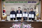 [ 타임즈 - 김시창 기자 ] 당진시는 지난 29일 당진시청 해나루홀에서 ㈜시드피아, 통합RPC와 함께 ‘신품종 벼 실증 및 유통 활성화’를 위한 3자 간 업무협약을 체결했다고 30일 밝혔다. 이번 협약은 당진시 쌀 산업의 경쟁력 강화를 목적으로 진행했으며, 신품종 벼의 지역 적응 실증(시범단지 운영), 상품화 및 유통·판매·홍보 등을 공동으로 추진하게 된다. 협약을 통해 당진시는 실증 재배단지 조성 등 특화쌀 육성 지원, ㈜시드피아는 신품종 벼 보급, 통합RPC는 상품화 및 유통 등을 각각 담당할 예정이다. 이날 협약식에서는 오성환 당진시장을 비롯해 ㈜시드피아와 농협 관계자 등 약 30명이 참석해 당진시 농업의 새로운 도약을 함께 다짐했다. 오성환 시장은 “이번 협약을 통해 도입되는 신품종이 농업인의 소득 증대뿐만 아니라 당진쌀 산업 전반에 새로운 활력을 불어넣는 계기가 되길 기대한다”고 말했다. 이어, “쌀 산업을 포함한 지역 농업이 지속 가능한 성장 산업으로 자리매김할 수 있도록 정책적 지원을 아끼지 않겠다”고 말했다.