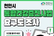 [ 타임즈 - 김시창 기자 ] 천안시는 오는 28일까지 내년 지역사회 통합건강증진사업 추진을 위한 주민요구도 조사를 실시한다고 6일 밝혔다. 시는 내년 지역사회 통합건강증진사업 계획 수립 시 사업의 우선순위와 핵심성과 지표 선정 등 시민의 의견을 반영하기 위해 주민요구도 조사를 실시한다. 조사는 인적사항을 비롯해 건강증진사업에 대한 인식도·참여도·만족도·사업의 우선순위 등 총 12문항으로 구성돼 있으며, 정보무늬(QR코드)를 통해 비대면으로 참여하면 된다. 기타 문의사항은 천안시 동남구보건소 건강생활팀으로 문의하면 된다. 이현기 서북구보건소장은 “천안시민의 건강 수준 향상을 위한 지역사회 통합건강증진사업에 시민들의 요구사항이 최대한 반영될 수 있도록 시민들의 적극적인 참여를 바란다”고 말했다.