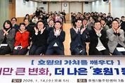 [ 타임즈 - 김시창 기자 ] 의정부시 호원1동주민센터는 1월 14일 주민센터 3층 다목적실에서 주민 100여 명이 참석한 가운데 호원1동 주요업무보고회를 개최했다. 이번 보고회는 ‘호원의 가치를 깨우다 – 작지만 큰 변화, 더 나은 호원1동의 미래’를 주제로, 2025년 추진 결과를 공유하고 2026년 중점 추진 사업을 주민과 함께 논의하기 위해 마련했다. 행사는 ▲새해 소망 공유 및 덕담 나누기 ▲표창장 수여 ▲2026년 주요업무 보고 ▲주민과의 대화 순으로 진행됐다. 주민들이 직접 작성한 ‘소망카드’를 내빈이 읽고 덕담을 전하는 행사는 현장의 공감을 이끌어내며 큰 호응을 얻었다. 호원1동은 2025년 한 해 동안 ▲망월로 걷고 싶은 거리 조성 ▲회룡초 통학로 환경개선 ▲호원천 생태하천 복원 ▲중랑천 소망존 환경개선 ▲호원 벚꽃 페스타 개최 등 생활‧안전, 생태‧환경, 문화‧관광 분야에서 여러 사업을 추진했다. 이를 토대로 2026년에는 ▲중랑천 상설무대 계단 조성 ▲중랑천변 금계국 군락지 조성 ▲호원천 다리 하부 조명 설치 ▲다락원 녹색쉼터 조성 ▲시립 백영수미술관 건립을 위한 준비 등 사업을