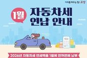 [ 타임즈 - 김시창 기자 ] 고양특례시 덕양구는 2026년 1월 자동차세 연납 납부서 63,688건을 발송하고, 오는 2월 2일까지 신규 연납 신청을 받는다고 15일 밝혔다. 자동차세 연납 제도는 매년 6월과 12월에 부과되는 정기분 자동차세를 1월에 한 번에 납부할 경우, 2월부터 12월분 세액의 5%를 공제해 주는 제도다. 이를 통해 납세자는 연세액 기준 약 4.5%의 절세 효과를 누릴 수 있다. 연납 신청은 매년 3월, 6월, 9월에도 가능하지만, 잔여기간에 따라 공제율이 차등 적용되므로 1월에 납부해야 가장 높은 할인 혜택을 받을 수 있다. 전년도에 자동차세를 연납한 차량은 소유권 변동이 없다면 별도의 신청 없이 공제된 금액이 기재된 납부서를 받아볼 수 있다. 다만, 신규 차량 취득자나 처음 연납을 신청하려는 납세자는 기한 내에 신청해야 한다. 자동차세 연납은 위택스를 통한 온라인 접수나 관할 구청 세무과로 전화 또는 방문 신청할 수 있다. 신청 후 납부하지 않더라도 오는 6월과 12월 정기분으로 과세되며 이에 따른 불이익은 없다. 납부는 전국 모든 은행의 CD/ATM기, 위택