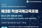 [ 타임즈 - 김시창 기자 ] 경기도교육청국제교육원이 22일 국내외 학생을 대상으로 ‘제3회 학생국제교육포럼’을 개최한다. 지난 2024년부터 시작된 ‘학생국제교육포럼’은 경기도 내 고등학교와 국제교류활동을 하고 있는 해외학교가 함께 참여하는 교류의 장(場)으로 올해는 한국 학생 44명과 일본·뉴질랜드·미국·베트남·필리핀·대만 등 해외 학생 33명이 참여한다. 올해 ‘학생국제교육포럼’의 주제는 ‘평등을 넘어, 형평성과 정의로(From Equality to Equity and Justice)’로 참가자들은 교육․디지털․건강․경제․문화와 인종 형평성 등에 대한 문제해결 가능성을 탐색한다. 포럼은 연세대 최영준 교수의 기조강연과 소주제별 활동 발표 및 강연자와의 토론으로 이어진다. 진행 방식은 실시간 쌍방향 원격프로그램을 통해 영어로 진행되며 유튜브를 통해 실시간 생중계된다. 박숙열 경기도교육청국제교육원장은 "이번 포럼은 국제교류활동을 하는 학교 간 소통과 네트워크 확대를 지원하고, 참가 학생들의 협력적 문제해결에 중점을 두었다”며 “앞으로도 다양한 문화적 배경의 학생들과 글로벌 문제에 대한