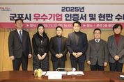 [ 타임즈 - 김시창 기자 ] 군포시는 17일 시청 3층 중회의실에서 ‘2025년 군포시 우수기업 인증서 및 현판 수여식’을 열고 5개 우수기업에 인증서와 현판을 수여했다. ‘우수기업 선정사업’은 2022년부터 시작하여 올해 4번째로 추진하는 사업으로 일자리 창출, 세수 증대 등 지역경제 활성화에 기여한 기업을 선정하여 인센티브를 부여하는 사업이다. 선정된 우수기업은 인증기간(3년) 동안 군포시 중소기업 육성자금 지원 시 추가 이차보전, 군포시 관내 공영주차장 이용 시 주차요금 감면, 협약병원 의료비 지원 등의 인센티브가 부여된다. 하은호 군포시장은 “어려운 경제 상황 속 관내 우수한 기업에 활력을 불어넣기 위한 우수기업 선정사업에 관심 가져주심에 감사드리며, 앞으로도 기업지원 사업을 다각화하여 기업 경영하기 좋은 환경을 만들겠다”고 말했다. 올해 선정된 군포시 우수기업은 △(주)아이씨에이치 △㈜지비티코리아 △주식회사예선테크 △듀라텍 주식회사 △㈜트리플닷 으로 총 5개 기업이다.