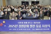 [ 타임즈 - 김시창 기자 ] 수원특례시는 18일 팔달문화센터 예당마루홀에서 ‘2025년 정원문화 발전 유공 시상식’을 열었다. 정원문화 발전에 기여한 시민과 단체 등에 수원시장상(47개)과 수원시의회 의장상(7개)을 수여했다. 시상은 표창장·감사패 수여, 시민정원 경연대회, 베스트 관리상, 올해의 정원인상 등 분야별로 진행됐다. 지난 10월 효원공원에서 열렸던 ‘2025년 수원시 시민정원 경연대회’ 수상팀들을 시상했다. 하나의 물방울이 만들어내는 무한한 생명의 파장을 표현한 ‘완뚝원정대’의 ‘리플(ripple) 가든’이 대상을 받았다. 어린 꽃이 꿈꾸는 산의 이미지를 담은 ‘진달래동산 꽃뫼’ 팀의 ‘어린 꽃이 꿈꾸는 뫼(산)’이 최우수상, 빛과 생명의 흐름을 표현한 ‘빛나게’ 팀의 ‘Flowing Light, Flowering Life(플로잉 라이트, 플라워링 라이프’가 우수상을 받았다. 이재준 수원시장은 “도심 속 열린 정원은 시민에게 휴식처가 되고, 기후 위기 대응에는 힘이 된다”며 “정원을 가꾼 수상자 노력에 감사하며 시민 일상에 초록이 늘도록 지원을 이어가겠다”고 말했다.