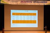 [ 타임즈 - 김시창 기자 ] 횡성군의 위탁을 받아 횡성인재육성관을 운영하고 있는 (재)횡성인재육성장학회에서 지난 17일 횡성문화예술회관에서‘2026학년도 대학입시설명회’를 개최했다. 인재육성관은 빠르게 변화하는 입시 환경에 대응하기 위하여 매년 두 차례 이상의 입시설명회를 열고 있으며, 이번 설명회에서는 변화된 2026학년도 대학입학전형 분석을 비롯해 올해 고려대학교 보건환경융합과학부에 입학한 인재육성관 선배의 학습 노하우, 고교학점제에 대응한 학습 전략, 횡성군 학생을 위한 맞춤형 대입 로드맵 등을 주제로 현장 중심의 실질적인 정보를 제공했다. 또한 학생·학부모·교사를 대상으로 개별 진학 상담과 입시 질의응답 시간도 마련해, 내년도 입시 준비에 실질적인 도움을 제공했다. 남복현 군 교육체육과장은 “이번 설명회는 빠르게 변화하는 입시 환경 속에서 횡성 지역 아이들이 더 나은 학습 환경과 역량을 발휘할 수 있도록 준비한 자리”라며 “많은 학생과 학부모께서 관심을 가지고 참여해주셔서 감사하다”고 말했다.