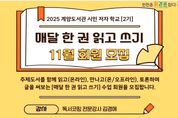 [ 타임즈 - 김시창 기자 ] 인천광역시교육청계양도서관은 인천시민을 대상으로 11월 7일부터 21일까지 시민저자학교 2기 프로그램 ‘매달 한 권 읽고 쓰기’를 운영한다. ‘매달 한 권 읽고 쓰기’는 한 권의 책을 깊이 읽고 그 안에서 발견한 생각과 감정을 글로 표현하는 시민 창작형 독서 프로그램으로 11월의 주제 도서는 김금희 작가의 ‘대온실 수리 보고서’이다. 참가자들은 작품을 중심으로 서로의 다름을 이해하고 글쓰기를 통해 자신과 세상을 성찰하는 시간을 갖는다. 참가 신청은 10월 27일부터 오전 9시부터 계양도서관 누리집에서 가능하며, 자세한 내용은 누리집 공지사항을 참고하거나 종합자료실로 문의하면 된다.