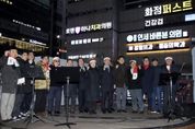 [ 타임즈 - 김시창 기자 ] 고양특례시 덕양구는 지난 2일, 따뜻한 연말연시 분위기를 조성하기 위해 화정문화광장에 대형 크리스마스 트리를 설치하고, 덕양기독교연합회 주관의 점등식 행사를 개최했다고 밝혔다. 이날 행사에는 덕양기독교연합회를 비롯해 한찬희 덕양구청장과 시민 50여 명이 참석했다. 크리스마스 트리에 불을 밝히며 성탄 메시지를 전달했고 축사, 중창단의 성탄 노래 등이 이어졌다. 화정역과 화정 문화의거리 사이에 위치한 화정문화광장에는 높이 7.9m, 폭 4m의 대형 트리와 포토존, 눈사람 조명 등 다양한 조형물이 설치돼 시민들에게 따뜻한 빛과 함께 희망의 메시지를 전한다. 크리스마스 트리는 매일 17시부터 익일 2시까지 점등해 화정역 광장을 중심으로 희망찬 연말연시 분위기를 연출할 예정이다. 한찬희 덕양구청장은 “추위로 몸과 마음이 움츠러드는 요즘, 점등식 행사를 통해 환하게 밝힌 불빛이 시민들에게 따듯한 희망과 위로를 주기를 바란다.”며 “크리스마스 트리를 통해 즐거운 추억을 많이 만드시고 모두가 따뜻한 연말연시를 보낼 수 있기를 소망한다”고 말했다.