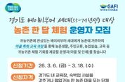 [ 타임즈 - 김시창 기자 ] 경기도와 경기도농수산진흥원은 ‘경기도 베이비부머 농촌 한 달 체험’을 운영할 마을·단체 2곳을 오는 18일까지 모집한다. 경기도귀농귀촌지원센터의 심사를 거쳐 선정된 체험 마을·단체 한 곳당 5개 팀을 맡게 되며, 체험 운영 역량 강화를 위한 멘토 교육과 프로그램 참가자 1팀당 최대 200만 원의 운영비가 지원된다. 마을·단체는 귀농·귀촌을 준비하는 베이비부머 세대(1955~1974년생)가 한 달간 농촌에 거주하며 영농실습과 지역민 교류를 체험할 수 있도록 임시 주거지와 교육 프로그램을 제공해야 한다. 귀농·귀촌 교육 및 숙박이 가능한 도내 농촌 마을·단체라면 경기도귀농귀촌지원센터 누리집에서 내려받은 신청 서식을 전자우편으로 제출해 신청할 수 있다. 기타 자세한 사항은 누리집 공고문이나 전화 문의를 통해 확인 가능하다. 최창수 경기도농수산진흥원장은 “베이비부머 세대가 막연한 귀농·귀촌이 아닌, 충분한 체험과 준비 과정을 거쳐 안정적으로 정착할 수 있도록 지원하겠다”며 “역량 있는 마을의 많은 참여를 기대한다”고 말했다.