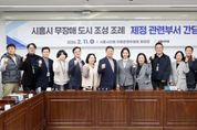[ 타임즈 - 김시창 기자 ] 경기 시흥시의회는 지난 11일 의회운영위원회 회의장에서 '시흥시 무장애 도시 조성 조례' (대표발의: 김수연 의원) 제정을 위한 간담회를 개최했다. 이번 간담회는 장애인, 고령자, 임산부 등 모든 시민이 물리적·심리적 장벽 없이 안전하고 편리하게 생활할 수 있는 도시 환경을 구축하기 위해 마련됐다. 이번 간담회에는 조례안을 발의한 의원들과 관계 공무원 등 총 20명이 참여하여, 무장애 도시 조성을 위한 제도적 방향과 실질적인 이행 방안을 집중적으로 논의했다. 조례안의 주요 내용은 ▲무장애 도시 조성의 법적 기반 마련 및 추진위원회 구성 ▲무장애 시설 점검 및 평가를 위한 모니터링 체계 구축 ▲ 참여 기관 등에 대한 재정지원 및 인센티브 부여 등이 있다. 참석자들은 국내·외 우수 사례와 시흥시의 현장 실태를 공유하며, 무장애 도시 조성에 대한 근거와 실효성을 확보하는 데 깊은 공감대를 형성했다. 특히 시흥시의회는 정책의 실효성을 높이기 위해 복지·도시정책·교통 등 관계 부서 간의 유기적인 협력을 주문했다. 현장의 애로사항과 민원을 적극 반영한 시범사업을 추진하여 시행착오