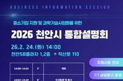 [ 타임즈 - 김시창 기자 ] 천안시는 오는 24일 천안과학산업진흥원과 함께 천안SB플라자에서 ‘중소기업 지원 및 과학기술사업화를 위한 2026 천안시 통합설명회’를 개최한다고 11일 밝혔다. 이번 설명회는 시와 관련된 기관·단체에서 추진하는 중소기업 지원사업에 대한 종합정보를 제공하고, 과학기술사업화 유관기관의 지원사업을 안내하기 위해 마련됐다. 설명회에는 중소기업 지원, 연구개발(R&D), 금융·보증, 기술사업화, 투자 분야의 공공기관 , 연구기관 등 22개 기관이 참여하며, 주요 정책 발표와 1:1 상담 부스 등을 통해 맞춤형 정보를 제공할 예정이다. 시 관계자는 “이번 설명회를 통해 중소기업들이 다양한 지원제도를 효율적으로 제공받을 수 있길 바란다”고 말했다.