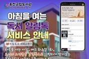 [ 타임즈 - 김시창 기자 ] 홍천군립도서관은 2026년 2월부터 군민의 독서 정보 접근성을 높이기 위해 매주 1회 우수 도서를 선별해 요약본을 제공하는 ‘아침을 여는 독서 알림톡’ 서비스를 운영한다. ‘아침을 여는 독서 알림톡’은 홍천군립도서관 정회원 400명을 대상으로 매주 화요일에 운영하는 대면하지 않는 독서 지원 서비스다. 매주 베스트 셀러, 오래 사랑받는 도서, 신간 도서, 세계 흐름 도서 등으로 구성한 도서 6권의 요약본을 휴대전화 알림톡(카카오 알림톡)으로 제공한다. 바쁜 일상에서도 짧은 시간에 책의 핵심을 읽을 수 있도록 내용을 간추려 전달하는 것이 특징이다. 서비스 관련 자세한 내용은 홍천 군립도서관 누리집(연봉, 서석, 남면, 내면, 별빛나루, 홍천 어린이도서관)에서 확인할 수 있다. 기타 문의는 홍천 군립도서관으로 하면 된다. 이성희 교육체육과장은 “독서 알림톡 서비스가 홍천 군민이 일상에서 자연스럽게 책과 만나는 계기가 되길 바란다”라며, “앞으로도 생활 속 독서 문화 확산을 위해 다양한 독서 지원사업을 지속적으로 운영해 나가겠다”라고 말했다.