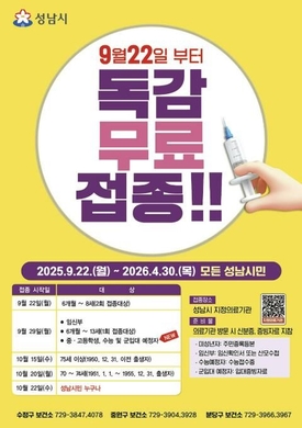 성남시 '90만8464명' 모든 시민 독감백신 무료 접종 시행