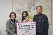 [ 타임즈 - 김시창 기자 ] 지난 11일, 박진솔․이연후 부부는 저소득 아동 10가구에게 패딩점퍼 10벌과 양말 20켤레(100만원 상당)를 기탁했다. 박진솔․이연후 부부는 “자녀 이루다의 돌을 맞이하여 의미 있는 일을 하고 싶어 기부를 했다”며 “추운 겨울을 맞아 도움이 필요한 아동들이 따뜻하게 지낼 수 있도록 패딩점퍼와 양말을 마련했고, 아동들이 포근한 온기 속에서 행복한 겨울을 보내길 바란다”고 말했다. 조연식 복지국장은“자녀에게 나눔의 가치를 심어주시는 박진솔․이연후 부부의 모습이 존경스럽다”며 “기탁해주신 패딩점퍼와 양말은 관내 저소득 아동들에게 따뜻한 겨울을 보낼 수 있도록 잘 전달하겠다”고 전했다.